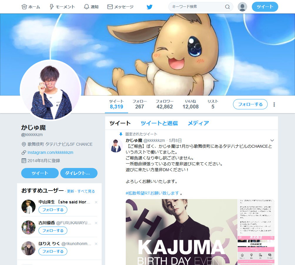 かじゅ魔で検索して出てくる本人のツイッターのヘッダー見てみw